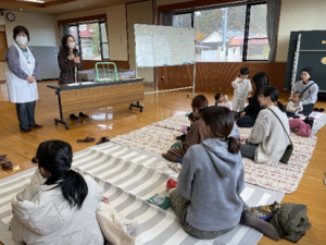 むし歯予防の紙芝居や新聞プールをして楽しんでもらいました。プレゼントした歯ブラシを親子ともに興味を持ってくれ、お家での習慣づけにも繋がったように思います。
